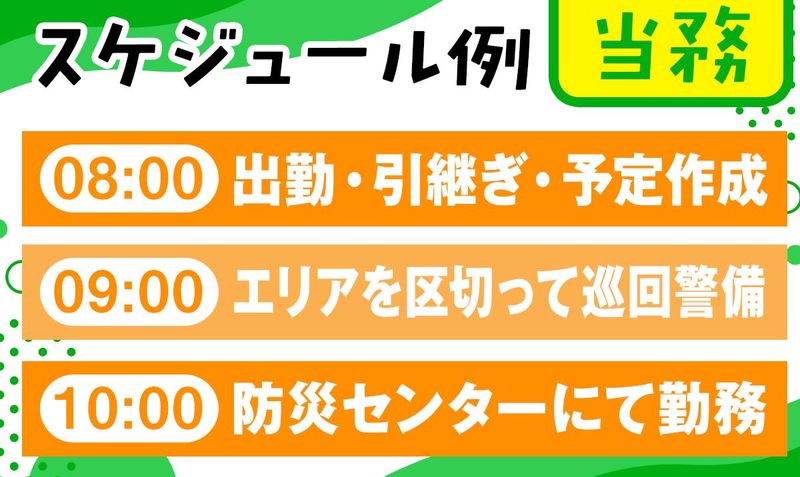 対象となる方 | 求めている人材 <<アクティブシニア採用の実績あり!>>  ̄ ̄ ̄ ̄ ̄ ̄ ̄ ̄ ̄ ̄ ̄ ̄ ̄ ̄ ̄ ̄ ̄ ̄ ̄ ̄ ◎未経験・初心者大歓迎 ◎学歴不問・年齢不問 ◎50代~60代の方が多数活躍中!! ★フルタイムOK ★副業・WワークもOK ★フリーターさん活躍中! ★ミドル・シニア世代も活躍中! ・・・・・・・・・・・・・・・・・・・・ <<こんな経験ある方大歓迎!>>  ̄ ̄ ̄ ̄ ̄ ̄ ̄ ̄ ̄ ̄ ̄ ̄ ̄ ̄ ̄ ̄ ▼交通誘導警備 ▼施設警備 ▼常駐警備 ▼学校警備 ▼夜間警備 ▼空港警備 ▼保安警備 ▼病院警備 ▼イベント警備 ▼警備員管理 ▼防災センタースタッフ ▼巡回スタッフ ▼環境保全スタッフ ▼セキュリティスタッフ ▼宿直員 ▼巡回警備スタッフ ▼駐輪場管理 ▼駐車場管理 ・・・・・・・・・・・・・・・・・・・・ 年齢の条件と理由:あり(18歳以上(警備業法により)) |