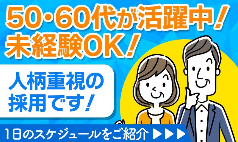 職場環境・雰囲気 | 職場環境 現場では50代~60代の、 ミドル・シニア世代の方々が在籍。 当社の経営理念である 「みんなが幸せに生きる」 という想いに共感し、 日々やりがいを感じながら イキイキと働いているんです。 雰囲気の良い職場を探している方、 是非ご応募ください! 喫煙所:なし(敷地内全て禁煙) |