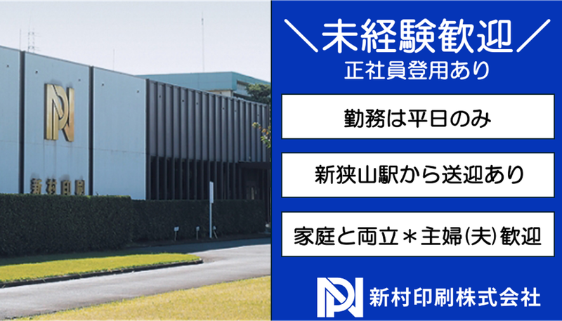 勤務地 | 新村印刷株式会社 狭山工場 350-1331埼玉県狭山市新狭山1-3-6 |