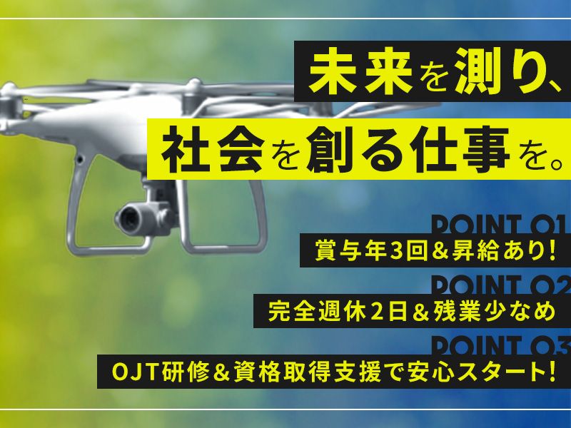 職種/仕事内容 | 仕事内容 〇●┈┈┈┈┈┈┈┈┈┈┈┈┈ 全国のインフラ整備に貢献できる やりがいのある仕事をしませんか? ┈┈┈┈┈┈┈┈┈┈┈┈┈●〇 《 働きやすさのPOINT》 ✅最大年3回の賞与あり! ✅昇給あり&手当も充実! ✅最先端の技術を学べる〇 ⇒ドローン測量・ICT活用など ✅年間休日125日!完全週休2日制 ✅残業は月11~20時間と少なめ! ✅現場OJT研修で安心のスタート ✅全国出張あり! ⇒多様な現場経験を積める〇 <<仕事内容>> あなたには、測量設計コンサル業務や 公共工事におけるICTに特化した サポート業務をお任せ! 現場作業のない日は、報告書をまとめ、 データ整理などを行います。 具体的には… ・現場での測量作業 (ドローン撮影などを含む) ・計測データの編集作業 ・建設機械へ搭載する施工データ (三次元設計データ)の作成 ・報告書の作成など *現場は日本全国で、出張もあります! (1回あたり2~3日ほど、最長で1週間) 多様な経験を積んで成長できる環境です。 |