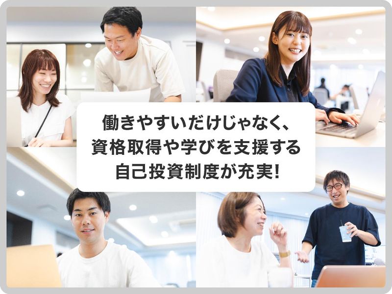 職場環境・雰囲気 | 職場環境 理念に共感する仲間と学び合い、 挑戦を後押しする風土。 IT環境や学習支援が整い、 休日や待遇・福利厚生も充実した 働きやすい職場です。 喫煙所:なし(敷地内全て禁煙) |