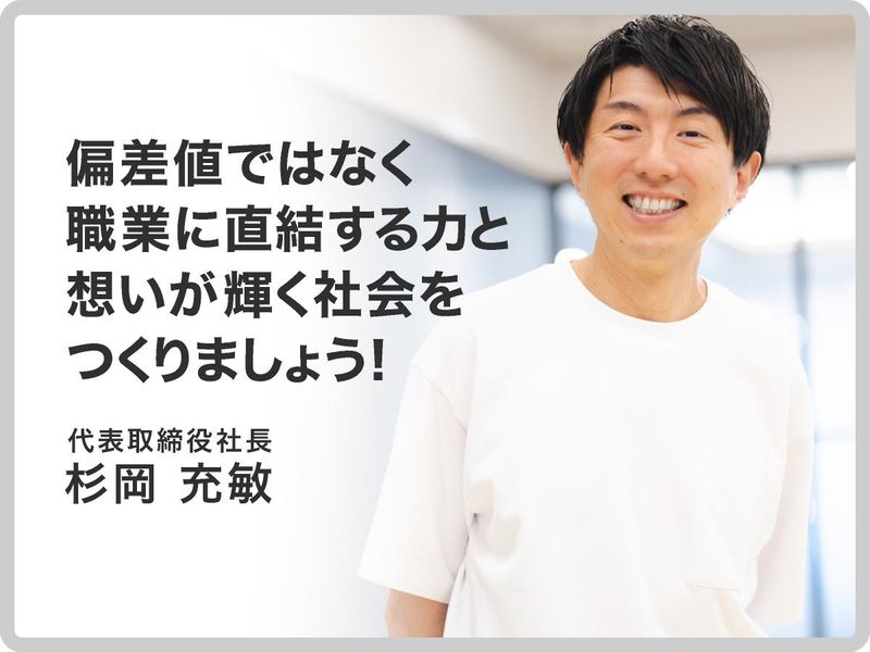 職種/仕事内容 | 仕事内容 ❑❑❑専門学校・専修学校向けの 就職プラットフォーム 「Careermap」を活用し、 登録企業へ“協賛プラン(有料利用)” の導入提案を行う法人営業です。 現在、導入実績は120校以上、 登録企業は約10万社。 インサイドセールスが 創出した商談に対し、 採用課題を掘り下げ、 企業の未来を作る採用企画の 提案〜導入までを対応。 導入後は、カスタマーサクセスとともに 企業側の運用〜活用定着まで支援します。 ★残業は月20~30h、 年間休日120日(2025年度)。 ★成果は年2回の査定と 年2回の賞与に反映されます。 +++- ■学校・学生・企業の幸せを繋ぐ! -+++ 建築・土木、調理・製菓、 美容・ファッション、Web・IT業界において 数多くの企業が人手不足に悩み、 高齢化が進んでいることも社会の課題です。 そんな中、私たちは 「若者が夢と希望を持って就職し、 自信と誇りを持って活躍できる社会づくり」 を進めています。 企業が自社の採用を長期にわたって 成功させ続けるためには就業希望者を 増やしていく必要がある。 企業と専門学校が協力して 学生の職業教育に取り組み、 就業意欲を高めることが出来る ITツール・デジタルネットワーク 「Careermap」を開発、 サービスを展開しています。 特徴は学生の課題・実習レポート等を ポートフォリオ化し、 学校と企業の双方向フィードバックで 学習・就業意欲を高める新しい仕組み。 企業は学生の“実践知”に触れた上で オファーでき、ミスマッチを減らします。 +++- ■インサイドセールスがアポイントを獲得! -+++ 「Careermap」導入実績は120校以上、 そして登録企業は約10万社。 業界、企業の期待は高まるばかりです。 飲食だけでも登録1万社規模、 うち4000~5000社が活用中という実績を ベースに提案の再現性が高いのも強みです。 飛び込み、テレアポはありません。 企業へのアポイントは インサイドセールスが獲得。 「新卒採用が初めて」 「専門学校の就活が不明」 「大卒採用は経験済だが離職が高い」 など企業ごとの課題解決に専念できます。 一般的な求人媒体の活用もサポートし、 認知→応募→内定後フォローまで 一気通貫で支援していきましょう。 採用KPI、育成・定着のボトルネック、 評価・OJTの設計などを 可視化していける点も人事・採用担当の 方々に満足していただけています。 +++- ■一から学び、企業の採用アドバイザーに! -+++ サービスの無料体験ができ、 受入・教育体制の整備だけで 毎年の安定採用に成功し、 結果として定着率UPや出店拡大が 叶ったなど成功事例はきりがないほど。 プランを当てはまるだけではなく 求人票→ポートフォリオ閲覧→ メッセージ→面談→職場見学→ 面接→内定・・・という一連の動線を 整備して伴走することも当たり前です。 短期の採用充足に留まらず、 定期採用と育成の仕組みづくりまで 価値提供しましょう。 もちろん、あなたがどんな業界の 出身者でも大歓迎! 一から学べる体制が整っているから 安心して挑戦してください。 理念に共感するメンバー同士で ナレッジを共有し、専門学校・企業の 課題解決ノウハウを蓄積する仕組みも確立。 資格取得支援、ビジネス書補助、 各種セミナー受講支援など 自己投資制度も充実しています! +++- ■想いをひとつにする仲間を増やしたい! -+++ はじめまして、代表の杉岡です。 あなたは進学に関して 疑問を持ったことはありませんか? 「とりあえず大学へ」という風潮に。 私たちはそれを変えたい。 理念は「すべての人がともに イキイキと はたらく未来を創る」。 偏差値では測れない魅力や才能が、 開花し、評価される社会にするため、 職業教育のDXによって専門学生を エンパワーメントしていきます。 教育に関して 感銘を受けたのはフィンランド。 小学生から自分の将来を自分で決め、 大学へ行くのか、専門学校へ行くのか、 自分の未来を自分で決めるのです。 勉強するため大学へ行こうと、 手に職をつけるため専門学校へ行こうと、 お互いにリスペクトし合う。 フィンランドのような教育の実現、 日本の社会構造の変革… 私の想いに共感していただけるなら ぜひあなたの力を存分に 発揮して欲しいと思います。 |
