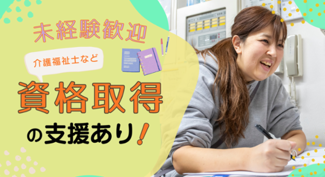 対象となる方 | 資格 無資格・未経験からスタートできます ※多くの方が当社で未経験から介護職を始め専門スキルを身につけています。 ※異業種やフリーターからの転職によるキャリアアップ事例も多数のため安心です。 ※無資格の方は、会社の支援を受けて働きながら資格の取得が可能です。 |