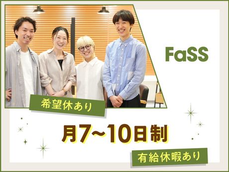職種/仕事内容 | 仕事内容 <<< 全国展開する『QB HOUSE』グループ >>> ─────────────────── カット&スタイリング専門店「FaSS」での接客と、 ヘアカット・スタイリング業務をお願いします。 ─────────────────── *シャンプー・ヘアカラーなしで手荒れもなし! *ノルマ・指名制度なしだからプレッシャーなし *時間外練習なしだから余計な残業時間なし *独自の研修制度があるから高いスキル必要なし ─────────────────── *毎月3日間の土日祝も可能な希望休がある *毎日90分しっかり取得できる休憩がある *社会保険などの福利厚生や賞与・手当がある *業界大手企業ならではのサポート体制がある ─────────────────── 丁寧にお客様の要望を聞いて適切なヘアスタイルの提案をしたり、 髪質や生え方のクセに合わせてスタイリングのアドバイスをしたりと 「QB HOUSE」とはまた違った楽しさがあります。 <<< 東証プライム市場上場企業 >>> 【全国展開する『QB HOUSE』グループ 】 『FaSS』は「Feel a Simple Style」というコンセプトのもと、 オシャレかつ開放的で居心地いい空間が特徴の ヘアカットスタイリング専門サロン。 現在は東京・神奈川に12店舗を展開。 女性が入りやすく、家にいるような 居心地のよい空間を実現するため、 「QB HOUSE」より店舗面積を広げて 観葉植物を配置したり、 内装はインテリアブランドがプロデュースするなど 空間づくりにもこだわっています。 <<< 先輩スタッフの声 >>> 「FaSSはヘアカットチェーンの中でも 特に“美容室らしさ”があるなと感じました。 優しい接客に確かな技術力が備わっていて、 お客様から感謝の声をいただくこともよくあります。」 (24歳女性) 「勤続2年半になりますが、 上司にはしっかり評価していただき、 昇給というかたちで還元してもらっています。 続けていくほど給与が上がっていくので、 やりがいは充分ですね。」 (28歳男性) 背伸びをせず、自分らしさや美容師らしさを 大切にできる環境で、 自然体・等身大のまま働いてみませんか? |