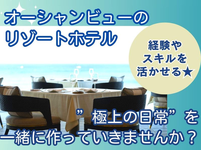 職種/仕事内容 | 仕事内容 ◤━━━━━━━━━━━━━━━━━◥ ⭐経験を活かせるお仕事! ⭐未経験・初心者OK! ⭐ゆっくりと過ごしたいお客様ばかり♪ ◣━━━━━━━━━━━━━━━━━◢ オーシャンビューのリゾートホテルの 『調理スタッフ』を募集! 【具体的には】 ○フレンチの調理 ○料理の盛り付け ◯鉄板焼きの調理 ◯朝食作り ◯ルームサービス ○食材の下準備 など、調理全般をお任せします。 未経験者スタートも大歓迎です ”ゆっくり過ごしたい”というお客様が 多くホテル全体が落ち着いた雰囲気✨ 。・*―――――――――――――――― 1987年創業、創業以来35年以上の 歴史を持つ老舗リゾートホテルが この度リニューアルいたしました! お客様にとっての”極上の日常”を 一緒に作っていきませんか? 【お問い合わせ先】 ■046-857-0108 (採用担当) ――――――――――――――――*・。 |