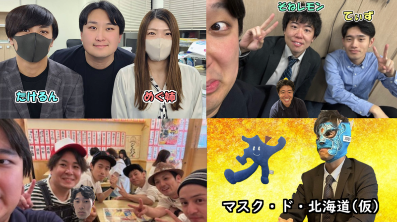 職場環境・雰囲気 | 職場環境 【最年少】22歳 【最年長】56歳 20~30代の男女が多め! 「マスク・ド・北海道」をはじめ 「てぃず」や「ふうまりい」 「ちーちゃん」「そねレモン」 「なるぞう」「TOM」「コバ」 「ドゥ子」「めぐ姉」など… 個性豊かな約40人が活躍しています! 喫煙所:喫煙所あり(屋内) |