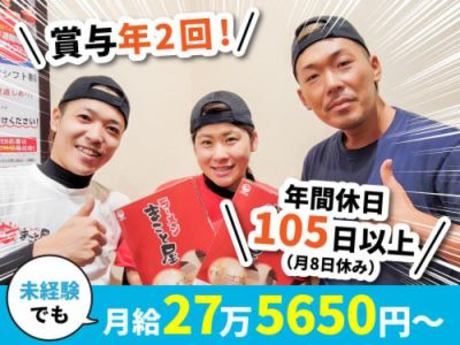 職種/仕事内容 | 仕事内容 【お仕事内容】 ╋━━━━━━━━━━━━━━━ ★異業種からの転職多数 ★賞与年2回 ★最短半年で店長 ★配偶者手当(1万円) 単身赴任手当(7万円)等手当多数! ★面接1回!即採用可◎ ★有給取得率100% ━━━━━━━━━━━━━━━╋ 子育て支援や配偶者手当もあり、 学校行事などでの土日休みも可能! ライフステージの変化にも柔軟に対応します! 【仕事内容】 ・ホール/お客様の注文確認、商品提供、レジ ・調理/麺場・焼場(チャーハン等) 仕込みなどのキッチン業務 売上もこの5年で急増加し 24年4月の前年同月比は+15.4%と 驚異の伸び率に! 2024年版の 「ラーメンチェーンの店舗数ランキング」 でも5位を記録しました! さらにそれが、経済や産業に 関する記事をメインで扱う 全国紙でも紹介されるなど 今まさに急成長中のラーメン店です♪ 2028年までに200店舗と、 まだまだオープニング計画があるので キャリアアップのポスト多数◎ 成長に拍車をかける為、 一緒に頑張る仲間を募集します。 === 【20代マネジャーより】 この会社に入社する前は、 焼肉店やとび職などを経験していました。 その頃は目指すべき目標や夢なんて 何もなかった僕ですが、 マコトフードサービスで働きながら、 店長やエリアマネジャーの背中を見ているうちに 「自分もこういう風になりたい!」 と強く思うようになりました。 それからは掃除や仕込みなど、 どんなことにも手を抜かず 一生懸命に取り組んだり、 スタッフさんと協力しながら働いたりした 姿勢を評価され、入社4年目で目標だった エリアマネジャーになれたんです! 年功序列でなく、何をしたかで 評価してもらえる環境って素敵だと思います! そして、「SUVを新車で買う」という もう一つの夢も叶えることができました(笑) ぜひあなたとも、当社でたくさんの夢を叶える 喜びを、一緒に感じていきたいです! |