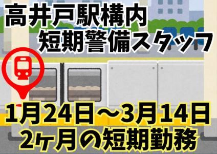 職種/仕事内容 | 仕事内容 駅の安全を最前線で守る! 京王井の頭線 高井戸駅構内での警備業務 2ヶ月間の短期高日給ワーク✨週1日~OK! \2026年1月24日 〜 2026年3月14日限定!/ 「短期間でしっかり稼ぎたい」 「Wワークで働きたい」 そんな方大歓迎! 【お仕事内容】 京王井の頭線 高井戸駅構内での警備業務です。 ホームドアの設置工事から警備が始まり、設置後も稼働しない状態。 利用客が誤って駆け込む、または駅員から見えない死角を警備でカバーし、 人身事故を未然に防ぐ、非常に重要で社会貢献度の高いお仕事です。 ■駅ホームでの監視 未稼働のホームドア付近を中心に監視し、危険な行為をチェック ■声かけ・誘導 利用客への注意喚起、安全な場所への誘導 ■緊急時の対応 危険を察知した場合、緊急停止ボタンを押すなどの初期対応 など 【おすすめポイント】 ■2ヶ月短期集中で高収入! ■駅構内勤務!天候に左右されず、快適◎ ■未経験者歓迎! 警備の経験がなくても、充実した研修で安心してスタートできます。 |