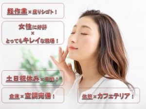 職種/仕事内容 | 仕事内容 openしたての綺麗な倉庫でまだまだ追加の大募集(/・ω・)/ 小さな電子部品やプラスチック製品を取り扱う企業内でのオシゴト 座ってできるレアな求人です! 弊社の女性スタッフが30名程なが~く活躍中 ■□仕事内容の詳細□■ ●商品リストを見ながら一つづつ探して部品を集める ●説明書を見ながら一つづつ商品を照合 ●キズや汚れがないか!を検品 ●ラベルを貼る ●まとめて箱に入れて出荷 座っての作業が60%のオシゴトです |