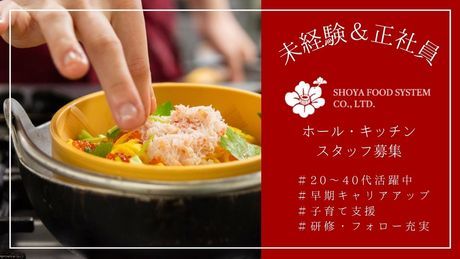 職種/仕事内容 | 仕事内容 \この求人のアピールポイント/ ・シフト希望OK ・賄い(一食150円)←スタッフおススメ! ・1分単位で残業代支給 ・飲食店運営のノウハウ修得可能、独立も応援! ・落ち着いて清潔な和の雰囲気漂う店舗 ・未経験から正社員で働ける、店長へのステップアップも可能★ ・早期キャリアアップ制度あり ※原則屋内禁煙、喫煙スペースあり 具体的な仕事内容 和食レストラン「庄屋」でNEWスタッフ募集中! 落ち着いた和を中心とした職場です。 未経験から正社員でキャリアアップ可能 まずは、見学だけでもOKです! お気軽にご応募ください! ≫≫≫電話でのお問い合わせ≪≪≪ お電話でのお問合せは、 080-4477-5278(採用担当)まで ご連絡ください。 (受付時間:9:00~18:00) ※土日祝・年末年始を除く ≫≫≫≫≫≫≫≫≫≪≪≪≪≪≪≪≪≪≪≪≪≪ 【*具体的なお仕事*】 ホールスタッフとして 接客業務のお仕事です。 ・接客、注文受付 ・料理提供 ・お客様のご案内 ・テーブルセッティング ・レジ対応 ※未経験者大歓迎 ※人と接する仕事がしたい、もOK ※安心して働けるマニュアル・研修が充実 ※キャリアアップも積極的に支援しています さらに希望があれば新店のオープニングスタッフとして立ち上げなどにも携わることも可能です! ■未経験の方も大活躍!■ 未経験でもあっという間に 仕事を覚えてどんどん昇給している スタッフが多数います! 選考プロセス 【 選考プロセス 】 1.エントリー 2.応募後、面接案内させていただきます 3.オンライン面接または直接面接(本社or現地)実施 4.内定 ※入社日については別途ご相談可能です ※ハローワークご覧の方も対象です 【法人概要】 会社名:株式会社庄屋フードシステム 住所 :福岡県福岡市博多区博多駅前1丁目9-3 従業員:2,292名(正社員234名、パート2,058名) 店舗数:計100拠点(2025年11月末) ●レストラン庄屋 / 54店舗 ●定食屋百菜 旬 / 23店舗 ●那かむら / 19店舗 ●おさかな家族 / 4店舗 【URL:https://www.sho-ya.co.jp/】 1971(昭和46)年、長崎の一軒の食堂から始まった庄屋フードシステムは、和食レストランから定食屋、天ぷら専門店、海鮮飯屋を手掛け、西日本を舞台に和食レストランを展開しています。九州を中心に根付いた知名度と実績を強みに、成長を加速させるべく、更なる発展を日々目指して活動しています。 |