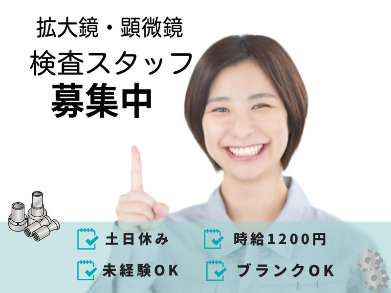 職種/仕事内容 | 仕事内容 2025年11月11日現在、忙しい状況が続いているため、追加で募集を継続しております。 ▶目視検査スタッフとして、切削加工された部品に不良や傷がないかを確認する検査業務です。 製品の外観を目視で確認するシンプルな作業が中心です。 特別な知識や経験は不要で、未経験からでも安心してスタートできる環境です。 「細かい作業が好き」「モノづくりに興味がある」という方なら、きっと楽しく取り組めますよ。 ・切削加工部品の外観チェック ・キズや汚れの確認および不良品の仕分け ・顕微鏡や拡大鏡を使用した精密検査 ・検査結果の簡単なデータ記録 ・作業場の整理整頓・清掃 作業は基本的に座り仕事です。 派遣先の社員の方から丁寧に教えていただけます。 検査や顕微鏡を使った経験がある方は大歓迎です! |
