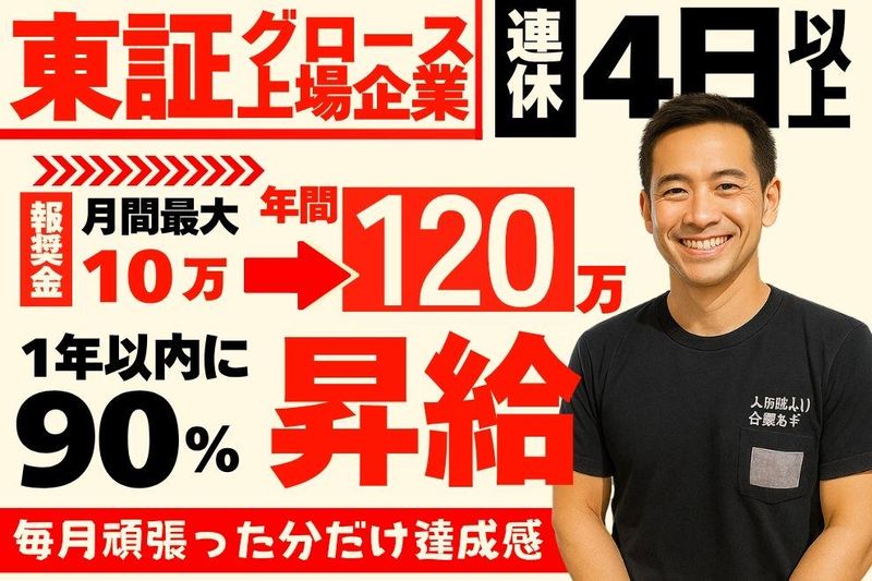 休日休暇 | 休日休暇 週休2日制/シフト制/月9日 ■最大4連休取得可能 ■慶弔休暇 ■有給休暇 (入社後6ヶ月経過で10日付与) |