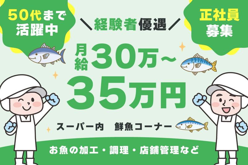 対象となる方 | 求めている人材 経験を活かしたい方も、 ――――――――――― ブランクのある方も歓迎! ―――――――――――― ✅鮮魚加工の経験がある方大歓迎! ✅主婦(夫)・フリーターも多数在籍 ✅久しぶりの仕事復帰も丁寧にサポート◎ ✅再チャレンジ応援します! ✅年齢・職歴問わず、スタートしやすい! 現在、20~60代までの男女が活躍中♪ ライフスタイルに合わせて 無理なく働けます◎ (( こんな方におすすめ! )) □スーパー・鮮魚店での勤務経験がある方 □寿司店などで魚を扱っていた経験がある方 □鮮魚加工のスキルをもう一度活かしたい方 あなたのスキルを、 もう一度現場で輝かせませんか? まずはお気軽にご応募ください✨ |