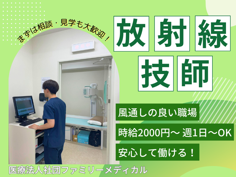 職種/仕事内容 | 仕事内容 【放射線技師/ブランクOK・週1~勤務可】呼吸器内科に特化した地域密着クリニックで、安心して無理なく働ける環境です。 日勤のみ・残業ほぼなしで家庭との両立も◎ チームワークの良い職場で、久しぶりの現場復帰もサポートします。 ブランク明けや副業希望の方も歓迎!安心してスタートできます。 【当院について】 当院は、地域に根ざしたあたたかい医療を目指す呼吸器内科クリニックです。 放射線技師として、ただ「撮る」だけでなく、患者さまの不安を軽くする存在に。 そして、あなた自身も安心して働ける職場づくりを何より大切にしています。 ・喘息通院患者数日本一!患者さまの症状やそれぞれの事情に合わせて治療計画を立て、丁寧にサポートします。 ・「重症化する前に…」理事長の想いから生まれた、予防医療に注力するクリニック。 ・神奈川・東京はもちろん、他県からも患者さまが来院され、診療件数は5万件以上! 【おすすめポイント】 ◎専門職としてスキルアップ ・呼吸器疾患(喘息、COPD、禁煙指導など)の最新知識に加え、予防医療の視点から「分子栄養学」も学ぶことができます。 ・検査について不安に思う患者さまへの対応を通して、コミュニケーションスキルも磨けます。 ◎安心して働くことができる環境 ・当院の診療理念は「患者さまと全職員の幸福の追求」。 ・スタッフ同士のチームワークを大切にしており、明るく和やかな雰囲気です。 ・若い世代も多く、中途入職でも馴染みやすい職場です。 ・ブランクのある方も安心して勤務可能。 ・Wワーク歓迎・日勤のみ・短時間勤務OKで、家庭やプライベートとも両立しやすい環境です。 \相談しやすく、働きやすい職場づくりを心がけています/ 少人数制の職場だからこそ、スタッフ同士の距離が近く、コミュニケーションもスムーズ。 分からないことがあればすぐに聞ける雰囲気があり、「一人で悩ませない」体制が整っています。 シフトの柔軟対応も可能で、家庭やプライベートと両立しながら働くスタッフも多数在籍しています。 ◎患者さまとの距離が近いクリニックだからこその魅力 ・元気になっていく姿を間近で感じられ、ありがとうの言葉を直接いただけます。 ・大きい病院で働いていて、「もっと患者さま一人ひとりに寄り添いたい」と思っている方にピッタリの職場です。 ◎診療は完全予約制のため、残業が少ないのも魅力です。 【勤務について】 平日にご勤務いただける方を歓迎しています。 業務の特性上お願いしたい曜日が生じる場合もありますが、まずはご希望を伺いながら無理のない範囲で調整いたします。 【仕事内容】 呼吸器内科専門医による診療を行っているため、 胸部レントゲンが業務の中心となります! 【当院で行う検査等につきまして】 ・レントゲン:胸部、腹部、手、足など ・肺がん検診など検診業務 ・連携病院でのCT予約 その他、電話対応や予約などの患者さん対応を行います。 【求める人物像】 \こんな方に向いています/ ☆人間関係の良い職場で穏やかに働きたい方 ☆ブランクがあっても、もう一度現場で働き始めたい方 ☆患者さまの気持ちに寄り添いながら丁寧な対応ができる方 【スタッフインタビュー】 Q.当院で働いて良かったことは? A.マルチタスクや他職種との連携力が上がりました。 経済的にもメリットがありQOL向上に繋がります。 コミュニケーションが取りやすく仕事がしやすいです。 患者さまの健康はもちろん、スタッフ一人ひとりの成長を大切にする当院で、新たなスタートを切りませんか? 迷っている方は院内見学も大歓迎です! ご応募心よりお待ちしております♪ |