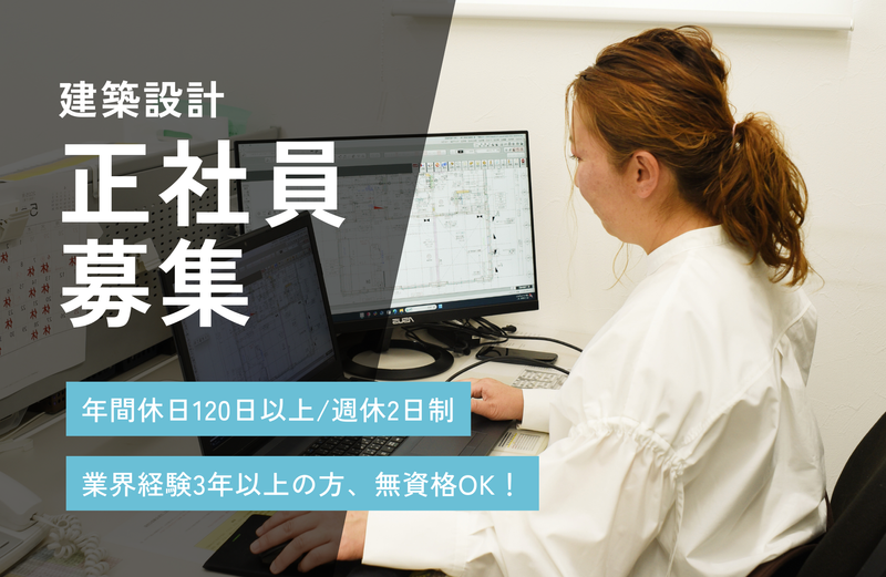 対象となる方 | 求めている人材 【 必須条件 】 ・高卒以上 ・要普通運転免許 ・住宅や店舗などの設計経験がある方 【 歓迎条件 】 *2級建築士・1級建築士の資格をお持ちの方 *顧客対応よりも設計の仕事に専念したい方 *実施設計・詳細設計を専門で行う部署で働きたい方 設計士は男性5名、女性3名が活躍中! 産休・育休からの復帰も応援します◎ |