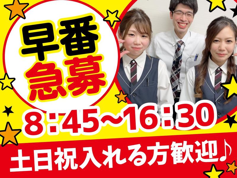 勤務時間 | シフト制 勤務時間詳細 【早番】 時間▶8:45~16:30 *土日祝半分以上入れる方 |