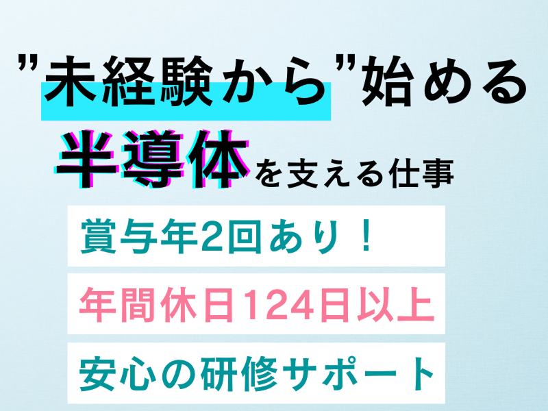 職種/仕事内容 | 仕事内容: ーーーーーーーーーーーーーーーーー 【★“最先端のモノづくり”を支える仕事★】 ーーーーーーーーーーーーーーーーー \\「何もわからない」からのスタート、大歓迎!// ★手に職をつけたい ★機械いじりやモノづくりに興味がある ★安定企業でイチから学びたい そんな方を、私たちは本気で育てます。 実際に多くの先輩が、未経験から“技術者”になっています! ✦ 年間休日124日以上 ✦ 日勤のみ&完全週休二日制 ✦ 初心者も安心のOJT+マニュアル完備 「やってみたい」という気持ちがあれば、大丈夫です! ーーーーーーーーーーーーーーーーー 【★そもそも「半導体」って何?】 ーーーーーーーーーーーーーーーーー スマホ・パソコン・自動車・家電… 現代のあらゆる電子機器に使われているのが「半導体」。 その“半導体”をつくるために必要なのが、 超精密な「半導体製造装置」です。 今回の仕事は、その装置を“支える”ポジション。 いわば【モノづくりの最前線を守る技術職】です。 ーーーーーーーーーーーーーーーーー 【★この仕事、ざっくり言うと?】 ーーーーーーーーーーーーーーーーー 装置がトラブルなく動くように ▼点検・メンテナンス ▼パーツ交換や設置サポート ▼動作確認や報告書入力 などを行います。 ⇒「機械のドクター」や 「設置アシスタント」のような役割です! ーーーーーーーーーーーーーーーーー 【★仕事内容(2パターンあり)】 ーーーーーーーーーーーーーーーーー あなたの希望・適性に応じて、 下記いずれかに配属します。 未経験の方は【常駐型】からの スタートが中心です。 ■① 常駐型(1つの現場に常駐)  ̄ ̄ ̄ ̄ ̄ ̄ ̄ ̄ ̄ ̄ ̄ ̄ ̄ ̄ ̄ ̄ ・半導体製造装置の点検・パーツ交換 ・マニュアルに沿った簡単作業の補助 ・作業エリアの安全確認 ・工具・部品の準備や作業報告の記入 (フォーマットあり) ・3~5名のチームで対応するので安心! ■② 訪問型(全国の工場へ出張)  ̄ ̄ ̄ ̄ ̄ ̄ ̄ ̄ ̄ ̄ ̄ ̄ ̄ ̄ ̄ ̄ ・装置の搬入・据付・立ち上げ補助 ・チームで現場準備・動作チェック ・実作業後の片付け・報告作業など 長期案件ではマンスリーマンション支給あり! 旅費はすべて会社負担! 「据付ってなに?」という方でも大丈夫。 先輩が横にいて、チームでサポートします! ーーーーーーーーーーーーーーーーー 【★この仕事の魅力ポイント】 ーーーーーーーーーーーーーーーーー ・ 素直に学べる人が、一番伸びる職場 ・「モノを動かす=成果が見える」から やりがいを実感! ・ 同世代の仲間とチームで動く安心感 ・ 年間休日124日以上&日勤のみ=働きやすさ◎ ・ 座学研修+現場OJTあり/マニュアル完備 ・ 先輩のほとんどが未経験スタートです! ーーーーーーーーーーーーーーーーー 【★キャリアパスも用意しています】 ーーーーーーーーーーーーーーーーー 未経験からスタートしても、 長期的に“なりたい姿”を一緒に描けます。 ・ 技術を極めたい → 装置・工程のプロ 「テクニカルエキスパート」へ! チームをまとめたい → 「管理監督職(副部長・部長など)」 としてマネジメントの道も! 定期面談を通じて、希望や適性に合わせて キャリアを設計できます。 ーーーーーーーーーーーーーーーーー 【こんな方にピッタリ】 ーーーーーーーーーーーーーーーーー ✅ 自分の成長を実感したい ✅ 手を動かすのが好き ✅ チームで協力して働きたい |