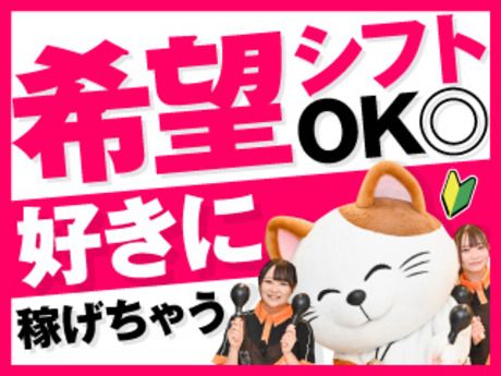 職種/仕事内容 | 仕事内容 <22時~翌5時は深夜時給で通常より高い!効率よく稼げる!> 実は…店舗数日本一のまねきねこ! ★高時給の他にも嬉しい特典多数! ・人気メニューが格安!食事補助あり! ・50%OFFの従業員割引あり! ・カタログギフトやミニボーナスが貰える! ★ランクに応じ時給UP! しろねこ→くろねこ→まねきねこ、と ランクアップしていく昇給制度あり♪ <自分らしくおしゃれも楽しめる♪> お客さまが不快な思いをされないことが前提ですが、 明るい笑顔、清潔感のある方なら髪色や髪型は自由! お客さまに食事を提供する業務があるため、 ネイルは単色で装飾なし、 ピアスは片耳に1個ずつとさせていただきます。 <大好評!履歴書不要のスマホ面接実施中!> スマホ面接は自分のスマホで、家でできる! 簡単な質問にポチポチ答えて短い録画をするだけ! →忙しいあなたにもピッタリ♪ <無理なし!初バイトや自信がなくてもOK!> フロント/受付/レジ/調理補助/ルーム清掃 ちょっとした洗い場など 簡単な作業から1つずつお任せします。 当店では未経験スタートの先輩が多数活躍中! 「できるかな…」と不安な気持ちもよく分かります。 イチから丁寧に教えますし、 分からない事はスグ聞ける環境なのでご安心を! ★スタッフ専用タブレット端末で、 マニュアル動画をチェックすることも可能♪ <夜間帯も色んなスタッフが男女幅広く活躍中!> ◎大学生の例 「いつもは学校後に夕方~、 翌日授業が休みの日だけ夜勤で」 ◎家事育児と両立する主婦パート(主夫)さんの例 「自分の家族が家にいて、 子どもを見なくても良い深夜にひと稼ぎ」 ◎かけもちバイト/Wワーク社会人さんの例 「夜までのバイト/仕事後にちょっと休憩してから… 深夜入りで朝まで勤務」 ◎週5日のがっつり勤務も大歓迎! 夜勤専属ロングシフト×週5日で 正社員並みに高収入を得ているスタッフも! →あなたも自分にぴったりの働き方で稼げます! 週2日~希望相談下さいね! <営業時間が幅広いからシフトはイロイロOK♪> 夜だけでなく、 早朝/昼/夕方など他の時間帯も、もちろん勤務可能! 色んな時間と組合わせて働けるのも嬉しいポイント! |