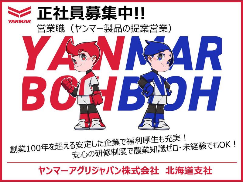 職種/仕事内容 | 仕事内容 農家の皆様のお悩みに合わせて、トラクター・田植機・コンバインなどの農業機械の提案営業を行います。 <具体的には> 作物の種類や地形、気候など地域条件の違いなど、条件やお客様の要望に合わせて、様々な農機の提案を行います。 お客様は、既存のお客様と新規のお客様が約8:2の割合です。 皆様には、担当の地域を持っていただきます。 初めは先輩社員に同行して頂けるので安心してください! 実際の営業を通して、農機の特徴や、農業の知識、提案方法などを身に着ける事ができます。 もちろん入社後に整備工場などでの実務を通じた研修がありますよ! <未経験スタートOK!> 異業種から転職したスタッフも多数活躍中! 農業機械に関する専門的知識は不要。 業務や研修を通じて丁寧にフォロー致しますので、安心してスタートできます! <働きやすい環境を整えています!> ・残業月平均14時間程度 ・有給休暇取得の15日以上消化の推奨 など 働き方改革として上記の取り組みも行っています! 有休日数に関しては、入社から1年経過するごとに付与日数が2日ずつ上がる仕組みを整えています! 改革を進めてきた結果「趣味に使う時間ができた!」と語る社員もいます。 仕事とプライベートとを両立させたい方にお勧めです。 <北海道は日本の食を支える農業基地> 当社は北海道の農業を、数十年に渡り支えてきました。 一般的に農機といえば、地味なイメージがあると思います。 しかし、展示会や試乗会などを通して実際に製品を実感いただき、 農家の方々からは、ヤンマーの農機は「カッコいい」と支持されております! ぜひ当社の農機で、地域の皆さんへ貢献していきませんか? <社員インタビュー> ・営業担当(入社3年目) 前職は家電量販店で販売の仕事をしていました。 ご来店されたお客様に提案するという待ちの営業に限界を感じて、自分からお客様のところへ行ける営業をやろうと考えこの会社に転職しました。 営業面では自分で戦略を立てながら動けますので、納得いくまで頑張れるところが楽しいです。 |