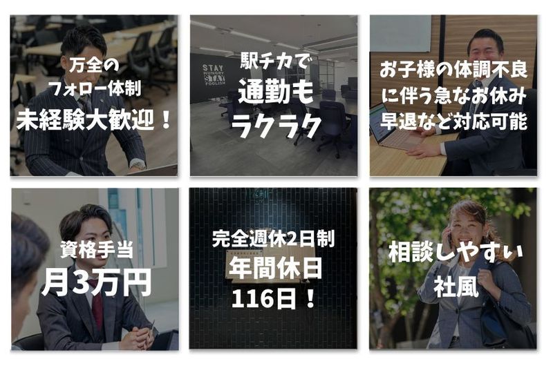 対象となる方 | 【応募資格】 ■応募資格 ・普通自動車運転免許(AT限定可)をお持ちの方 【ご入社にあたって】 入社時に「有効な宅地建物取引士証」のご提出が必要となります。 ※宅地建物取引士証をお持ちでない場合は、交付申請等の手続きを行っていただき、受領後のご入社となります。 なお、入社後は専任の宅地建物取引士として登録をお願いする可能性があります。 ■定年60歳。再雇用制度あり(最長65歳まで) ※再雇用後の雇用条件(給与など)は、スキルや能力に応じて決定いたします。 【宅建資格をお持ちの方、お待ちしております!】 「資格はあるけど実務経験がない」方も大丈夫! 当社では長期的なキャリア形成を目指し、幅広い世代の方を積極採用中です! ■20〜50代まで活躍中! ■男女ともにバリバリ活躍中! ■業界・職種未経験の方もOK! 【メリット】 #長期 #急募 #未経験者歓迎 #経験者歓迎 #有資格者歓迎 #社会保険完備 #賞与あり #交通費支給 #オープニングスタッフ #残業なし #PCスキル #駅近5分以内 #昇給あり #第二新卒歓迎 |