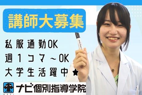 職種/仕事内容 | 仕事内容 <<未経験者歓迎!個別指導塾の先生大募集!>> 「勉強がすごく得意だったわけではない…」という方も大歓迎☆ 担当いただく学年や教科は、ご希望やレベルに合わせて決めます マナーから宿題の出し方まで、研修でしっかり教えます! 【仕事内容】 中学生・高校生を対象とした、個別指導塾でのお仕事! 一人ひとりの生徒とじっくり向かい合い、 子どもたちに「自分でできた!」という勉強の楽しさを知ってもらうためのお仕事です◎ 個別指導のほか、自習室の対応などをお願いすることもあります。 ・週1日、1日1コマ(90分)~勤務OK! ・中学1年生~高校3年生が対象! ・講師1名に対し、生徒1~3名の体制です。 ・研修充実!指導経験のない方も安心です♪ ・興味がある方は、小学生の指導にも携わっていただけます。 ・教えるのは得意な教科だけでもOK 【指導教科/科目】 中学生:国語/数学/英語/理科/社会 高校生:英語/数学/物理/化学 ※簡単な学力テストの結果をもとに担当学年や教科を決定いたします ◆健康経営認定優良法人◆ ワークライフバランスの充実などの取り組みをしています! *当社は、健康経営推進検討会より 優良な健康経営を実践している企業として認定されています。 【充実した研修制度】 マニュアル完備! モラル・マナー、授業の進め方、宿題の出し方など、 模擬授業の練習を行いますので、未経験の方でも安心です! 【特別なガクチカゲット!就活に役立つ】 講師コンテストにエントリーすれば、より特別なガクチカを手に入れられるかも! 教員/公務員採用試験対策セミナーに参加できるのも、当塾の強み★ 【スキマ時間で効率よく働く】 コマ時給は1,200円~1,466円! 短時間でしっかり稼ぎたい方に最適です! ☆自由なシフトが魅力! 完全シフト制で、週1日~勤務可能なので、 学業やサークル、プライベート、家事や育児、本業との両立もバッチリです! 大学のテスト期間などのシフトももちろん考慮しますよ◎ 【副業・WワークOK】 昼のお仕事との両立をしたい方も、週1日だけ働いて他の曜日は別のお仕事をしたい方も、WワークOKなのでご自身の生活スタイルに合わせた形で働いていただけます もちろんがっつり働きたい方も大歓迎です! ※副業・Wワークに関しては、同じ業界・職種でのかけもち勤務はお断りさせていただいております |