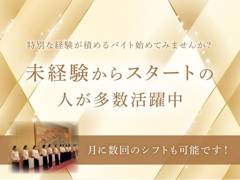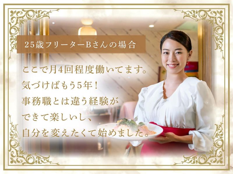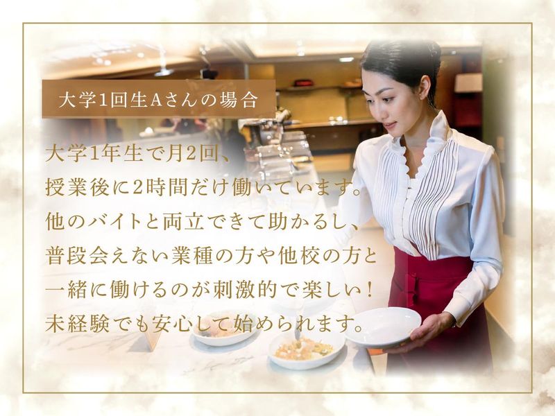 職種/仕事内容 | 仕事内容 < 自分のFreeタイムが活かせる仕事 > 働き方自由!短期もOK 週1回でもOK CA・モデル・局アナ志望の方も活躍中! 勤務開始日などはお気軽にご相談ください! 【レセプタント募集(パーティーアテンダー)】 ワンモアー上の上質な時間を過ごしてもらえるように、 お出迎えや誘導・パーティー内の飲食サービスなどが主な仕事内容。 <就活に役立つマナーが身に付きます> <スキマ時間活用で収入アップの方多数です!!> <勤務開始日は相談可能!> <有名ブランドの衣装を着れるチャンスもある!> |