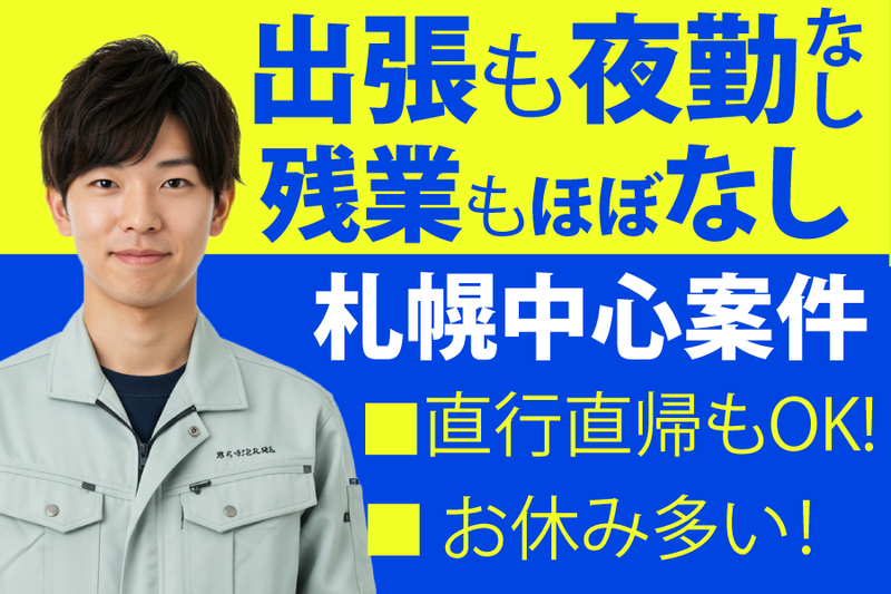 職種/仕事内容 | 仕事内容 「そろそろ自分の経験をもっと活かせる環境へ」 ──そんな方に選ばれている会社です。 ■この求人のPOINT ・現場経験を活かして、施工管理へとステップアップしたい方も歓迎! ・札幌勤務・転勤ナシ。マイホームや人生設計を見据えて働けます◎ ・残業は月10h未満&夜勤ナシ。年休120日で自分時間もしっかり確保。 ・社長や先輩との距離が近く相談しやすい風通しの良さが大きな魅力。 ・資格取得も会社がサポート。更なるキャリアアップを応援します! ■仕事内容 給排水や空調など、建物内のインフラ設備に関する施工管理業務です。 担当は、マンション・ホテル・福祉施設・工場などの中〜大規模案件。 規模や経験に応じて、徐々に現場をお任せしていきます。 <具体的には> ・施工スケジュールや進行の管理 ・品質や安全のチェック ・作業スタッフへの指示・フォロー ・材料や設備の手配・管理 ・書類作成や図面確認などの事務作業 など ◎「ただ工程を追うだけ」でなく“品質にもこだわる”丁寧な仕事ができます。 ◎将来的には、後輩指導や技術継承にも携われます。 ■先輩社員の声 ・社長や先輩への相談がしやすく、未経験でも自信がつく環境です。/船板 ・お客様の日常に役立つ設備を一から作り上げる、やりがいある仕事です。/藤原 ・社長が『いいぞ、やってみな』と背中を押してくれる風通しの良い職場です。/H ■もっと知りたい方へ ・採用サイトでは仕事内容やリアルな声などを掲載中 https://site8.saiyo-dekirukun.com/ns-tecno ・スタッフのインタビュー記事もnote公開中 https://note.com/ns_tecno ■株式会社エヌエス・テクノってこんな会社です ・札幌市を拠点に、空調・給排水などの設備工事を手がけています。 ・マンション・ホテル・福祉施設・工場など、大型建物の工事を多数担当し 施工から管理まで一貫して自社で対応しています。 ・ゼネコンや大手建設会社からも依頼される、確かな技術力が強みです。 ■最後に 経験を活かして、もう一段階ステップアップした仕事に挑戦したい。 働きやすさや人間関係も大事にしたい。 そんな思いを抱くあなたに、きっと合う環境です。 まずはぜひ、一度お話ししてみませんか?ご応募を心よりお待ちしています。 |