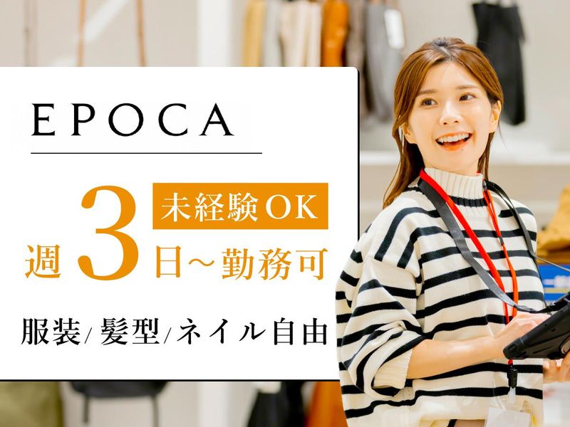 職種/仕事内容 | 仕事内容 はじめてのアパレルも安心。 EPOCAで“好き”を仕事に。  ̄ ̄ ̄ ̄ ̄ ̄ ̄ ̄ ̄ ̄ ̄ ̄ 「おしゃれが好き! EPOCAでお買い物したこともある」 「アパレルは未経験だけど、 接客や販売の経験はある」 そんな20~30代の女性が、 木更津の店舗で活躍中! 飲食や営業など、これまでの 接客スキルを活かしながら、 好きなファッションに囲まれて 働けるチャンスです♪ ⏩ 時給1300~1600円 ⏩ 未経験でも安心の研修& 丁寧なサポートあり ⏩ 正社員登用制度あり! キャリアアップも目指せる! ⏩ ディスプレイ変更やSNS発信など、 アイデアを活かせます♪ ⏩ 服装・髪型・ネイル自由! 自分らしいスタイルで働けます メンズブランド「エポカウォモ」と レディースブランド「エポカ」の複合ショップ♪ <お任せするお仕事> ✅接客・販売 ▶お客様と会話を楽しみながらご提案♪ ✅商品管理や売上管理 ▶チームで協力しながら進めます ✅リピーターのお客様への ご案内やご対応 ✅ディスプレイ変更やSNS投稿 などの販促活動 ✅来期の企画に向けたアイデア出し など <安心して働けるポイント♪> ⭐ 未経験から始められる安心の研修制度 ⭐ シフトは週3日からOK! 家庭やプライベートとも両立可能 ⭐正社員登用あり! アルバイト・パートからでも、 社員を目指すことができます。 ※今回はアルバイト・パート募集ですが、 "最初から正社員として働きたい"方も ご相談ください! <こんな方にぴったり> 「洋服やファッションが大好き」 「人と話すことや接客が好き」 「おしゃれを楽しみながら働きたい」 あなたの“好き”が仕事になる場所です。 一緒にEPOCAの世界観をお客様に届けていきましょう。 |