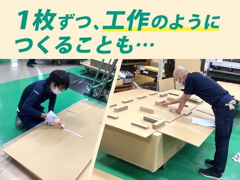職種/仕事内容 | 仕事内容 / 小さい頃から美術やもの作りが 大好きだった! 専門家ほどではないけど 何か携われる仕事がないかな…。 「こつこつ地道にこなす作業は得意」 「学生時代、図工や工作が好きだった」 そんなあなたにぴったりの 仕事です。 \ ・――――――――・・――――――――・ 未経験だった先輩が多数活躍中 ダンボール箱の製造スタッフ ・――――――――・・――――――――・ | 未経験OK!初めての正社員も大歓迎 | 週休2日(土日祝休み)・ 年休124日! | 日勤のみで残業もほぼなし! | 定着率バツグン! ・――――――――・・―――――――― <仕事内容> ダンボールのカットや印字など 専用の機械を使っての加工・製造がメイン! あわせて、テープでダンボールを 貼り合わせるなど軽作業もおまかせします! 基本はコツコツ・モクモク作業なので 決められた手順を守って マジメに取り組める方なら大丈夫! 実際、いま活躍中の先輩たちも ほとんどが未経験スタートでした! < 定着率バツグンの理由は…> 当社の自慢は、定着率が高いこと! 20代で入社した先輩も30代・40代となり、 今では頼れるベテランに!昨年入社した 2名もすっかり馴染んでいます。 長く続けられる理由は、無理のない働き方。 工場内は冷暖房完備で年中快適! 8時~17時の日勤のみで残業ほぼなし。 (休憩が70分と少し長めなのも嬉しい!) 土日祝休みで年休124日と お休みだって充実しているから、 趣味や家庭との両立もしやすいんです。 アピールポイント: <当社について> 私たち伸英紙器工業所は、 さまざまなダンボールを作る会社。 たとえば、某大学の作品を 1点ずつ承り、美術品展示の 運搬時に梱包する段ボールを つくります。 当然作品によっても形も 大きさも違います。 他では断られることもある 1点や数個の注文などニッチな仕事も 伸英紙器さんなら受けてもらえる! そんな信頼があるからこそ、 仕事量は常に安定。 より多くの声にお応えするための 増員募集です。 |