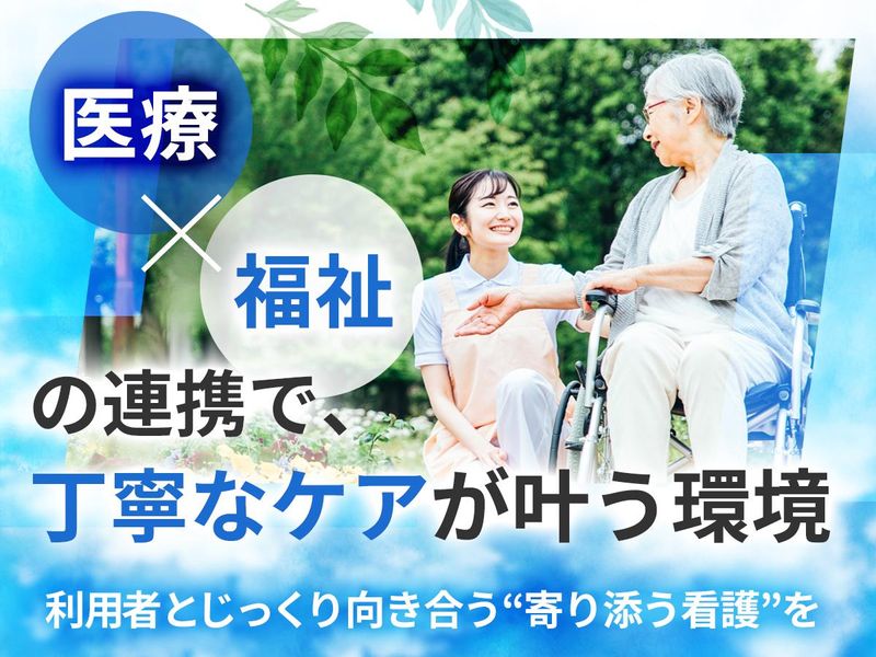 対象となる方 | 求めている人材 【必須条件】 ✅正看護師資格をお持ちの方 ✅臨床経験3年以上 【歓迎条件】 ◇急性期・慢性期など病院勤務の経験をお持ちの方 ◇福祉・介護分野での看護に関心がある方 ◇チーム医療・連携を大切にできる方 ◇訪問看護師、デイサービス看護師、クリニック勤務など幅広い経験をお持ちの方 ◇中高年・シニア層の方も歓迎します ◇夜勤経験のある方(夜勤専従看護師としての経験も活かせます) 【こんな方にピッタリ】 ・一人ひとりの生活に寄り添った看護がしたい方 ・ゆとりを持って働きたい方 ・長期的に利用者と関わりたい方 ・職場の雰囲気や人間関係を重視する方 ▼“治す”から“支える”看護へ 利用者に寄り添う気持ちを 大切にできる方を歓迎します。 ここには“慌ただしさ”よりも “穏やかな関わり”があります。 あなたの経験が、利用者の安心につながる――。 心で寄り添う看護を、ここから一緒に。 |