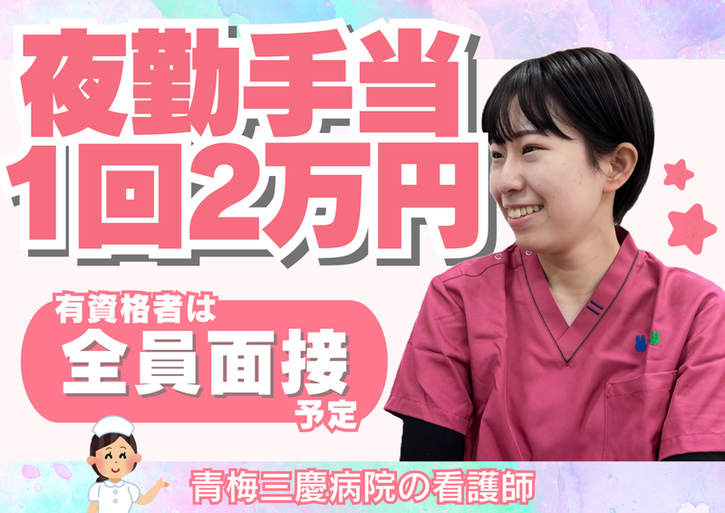 職種/仕事内容 | 仕事内容 【平均月収38万円!夜勤手当1回2万円】 しっかり稼げる♪ 精勤手当・住宅手当など手当充実! ◤具体的な仕事内容◢ ✅入院患者の看護計画に基づいた看護 ✅医療補助、リハビリ補助 ✅食事介助 ✅回復期リハビリテーションサービスの 提供 ◆夜間勤務:月2~7回程(希望に応じて) ◆急性期治療を終え、継続治療が 必要なご高齢の患者様が 多数長期入院をされております。 ◤経験が浅くても安心!入職後は…◢ 正・准看護師の資格があれば、 経験は問いません! 担当の先輩スタッフと一緒にOJTで 仕事の流れを学んでいただけますので、 施設でのお仕事が初めてでも安心。 久しぶりに復帰する方も、自分のペースで 業務に慣れていただけますよ。 ◤働くだけでなく「休み」も重要◢ 職員の健康のためにも、 しっかりお休みすることも重要。 当院では、ワークライフバランスを充実させ、 プライベートを大切にできる環境を 整えています! ⏩年間休日120日 ⏩有給休暇取得率ほぼ100% ⏩時間外労働はほとんどなし ⏩夜勤回数は希望制 ⏩日勤のみの勤務可 ✅月に3~6回ほど希望休提出OK! 家庭や私用の都合に合わせて、 お休み申請を出すことができます。 プライベートを優先することも◎ ✅急なお休み調整も可能! お子さんの急な体調不良で休みたい… など突然のお休みにも対応します。 お子さんがいるスタッフも在籍しているので みんなで協力していますよ♪ ◤地域に愛される病院を目指して◢ 1979年6月設立の「青梅三慶病院」は、 設立から45年以上 青梅市の地域医療に根差し、 皆様の健康維持に努めて参りました。 当院では、急性期治療を終え、 継続治療が必要なご高齢の患者様が 多数長期入院をされております。 ✨最後まで食べることが楽しめるように、 言語聴覚士や栄養サポートチームとの 連携で、摂食嚥下訓練、口腔ケアへの 取り組み ✨長期臥床によるADL低下や 拘縮予防に努め、 理学療法士とも話し合いながら、 病棟内外のリハビリの推進 ✨認知症の方の理解を深め、 より良い認知症ケアが実践できるよう、 院内研修の実施 …など、私たち看護部は、 温かくやさしさのある看護の提供を 理念に掲げ、 患者様の入院生活の苦痛を少しでも緩和し 安心して過ごせることを目指して、 日々医療サービスを提供しています。 |