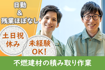 職種/仕事内容 | 仕事内容 日勤×土日祝休みだからプライベート充実◎住宅用資材の積取作業! <仕事内容> 住宅用資材をラインから積み取るお仕事です。 機械がカットした不燃建材(石膏やセメント)の板がコンベアーから流れて来るので、その板を2人1組で持ち運び、約3mほど離れたパレットの上に積み上げて頂きます。 板は長さ2m30cm,幅30cmほどで板の重さは10kg~20kgになりますが、ペアで作業するので負担は半分です! 作業スピードはとてもゆっくりで細かい作業もないので、未経験でもすぐにお仕事を覚えられます! 立ち作業でのお仕事です。 グループ作業となります。 《環境》 男性が多い職場です。 冷暖房完備です。 ロッカー有り|休憩室完備 アピールポイント <仕事内容> 住宅用資材をラインから積み取るお仕事です。 機械がカットした不燃建材(石膏やセメント)の板がコンベアーから流れて来るので、その板を2人1組で持ち運び、約3mほど離れたパレットの上に積み上げて頂きます。 板は長さ2m30cm,幅30cmほどで板の重さは10kg~20kgになりますが、ペアで作業するので負担は半分です! 作業スピードはとてもゆっくりで細かい作業もないので、未経験でもすぐにお仕事を覚えられます! 立ち作業でのお仕事です。 グループ作業となります。 《環境》 男性が多い職場です。 冷暖房完備です。 ロッカー有り|休憩室完備 \充実した福利厚生/ ◎社会保険・雇用保険完備 ◎有給休暇有(6ヶ月経過後、10日付与)※規定あり ◎残業手当 ◎交通費支給(規定内) ◎確定拠出年金制度 ◎週払い制度(週3回対応) ◎お友達推薦制度あり(規定有り) ※1名につき3万円~10万円臨時給与として支給 ◎車(マイカー)・バイク通勤可(無料駐車場あり) ◎食事持参可、日勤シフト時のみ仕出し弁当あり ◎作業着貸与 ◎冷暖房完備 ◎ロッカー・休憩室利用可 ◎福利厚生プログラム (宿泊、グルメ、ショッピングなど大幅割引が受けられる10万アイテムのメニューがあります。) |