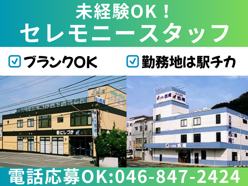 職種/仕事内容 | 仕事内容 ⏩駅チカ徒歩2〜5分で通勤ラクラク ⏩未経験歓迎!丁寧に教えます◎ ⏩幅広い年代が活躍中です!! ▼▽▼電話応募歓迎▼▽▼ TEL 046-847-2424 (受付/9時半~18時) お気軽にお問合せください! =================== <泊まり込みでの勤務なし> 週2日~OK!無理なく勤務可能! やりがいと働きやすさが両立した職場です =================== 【仕事内容】 ■事前相談~通夜、葬儀の準備、運営、 葬儀後のアフターフォロー。 葬儀は1件あたり平均3~4名の スタッフで担当します。 分からない事は質問しやすい環境です。 ✨セレモニー関連の業務を通じて、 質の高い接客サービスを学べると同時に、 葬祭関連の教養も深く身に付きます。 業界未経験・接客未経験の方でも 丁寧に教えていくのでご安心ください。 ―――――――――――――――――― <午前中に1件葬儀がある場合の1日の流れ> 09:15/式場に出勤し、葬儀の準備スタート 11:00/葬儀を開始、式の進行及び補助業務。 12:00/式が終了し、片付け 13:00/備品の整理 15:00/営業車の洗車や清掃 18:00/翌日の準備をして帰宅。 葬儀がない時間帯は、備品の整理や 清掃等を行って頂きます。 - 【勤務地詳細】※日により異なる [1]西庵野比店…横須賀市野比1-13-6 ⇒「YRP野比」駅徒~徒歩2分 [2]西庵久里浜店…横須賀市久里浜5-10-11 ⇒「京急久里浜」駅~徒歩3分 [3]西庵北久里浜店…横須賀市根岸町2-33-3 ⇒「北久里浜」駅~徒歩3分 [4]西庵堀ノ内店…横須賀市三春町2-2 ⇒「堀ノ内」駅~徒歩5分 [5]西庵追浜店…横須賀市追浜本町1-14-2 ⇒「追浜」駅~徒歩2分 [6]西庵三浦海岸店…三浦市南下浦町 上宮田3371 ⇒「三浦海岸」駅~徒歩2分 - |