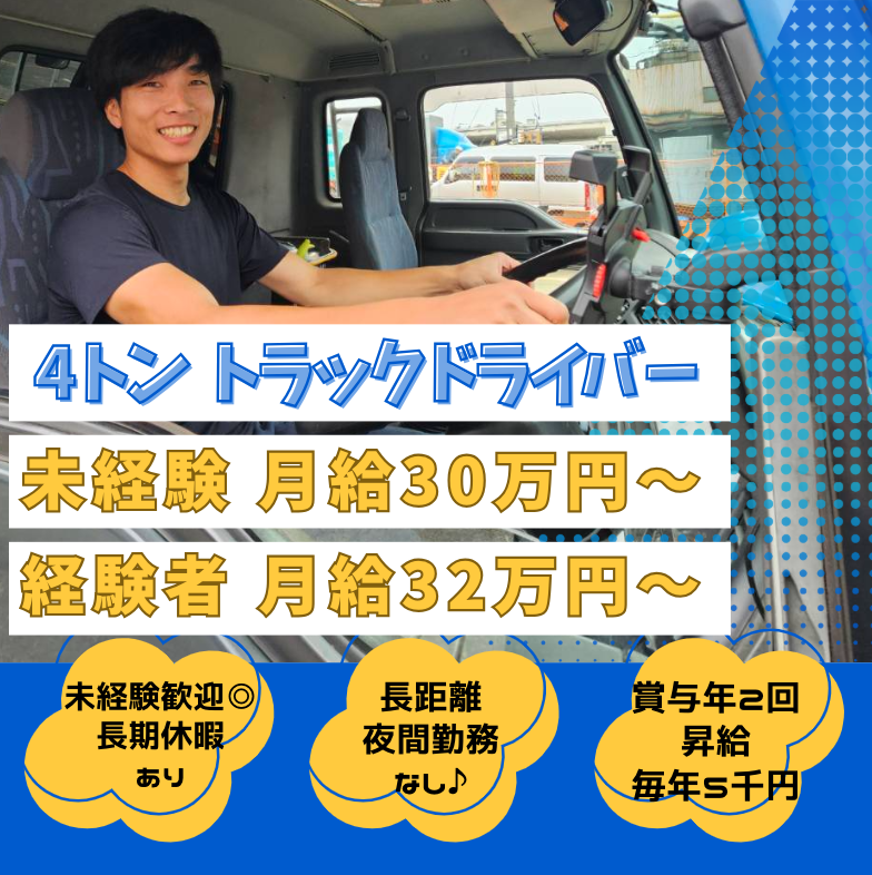 職種/仕事内容 | 仕事内容 当社は、主に空ドラム缶の輸送を行う配送業務をメインとしております! 取引先との信頼関係は良好で、業務量は安定しており、 スタッフ全員が安心・安定して働ける環境が整っています♪ 未経験者も経験者も、働きやすさを重視した職場で 一緒に新しいスタートを切りませんか? 「今は夜勤ばかりで家族との時間が取れない…」 「夕方には帰って子どもとご飯を食べたい」 「土日に自分の時間を確保したい」 そんな方もプライベートを重視した働き方ができます♪ ★この求人の魅力★ ………………………………………………… ✅ 月給30万円~45万円の高収入! └想定年収400万円以上も可能! ✅ 普通免許でOK!無資格から活躍できる! └資格支援制度あり! ✅ 働きやすさでプライベートも充実♪ └ 土日祝お休み・長期休暇あり! ✅ 福利厚生も充実♪ └プロ野球観戦チケットや食事会等 ……………………………………………… ★4つの魅力ポイント★ ➀【嬉しい高収入&充実の福利厚生】 └月給30万円~45万円の高収入! ◆未経験の方→月給30万円~ ・2年目からは経験者として月給20,000円アップ♪ ・3年目からは毎年月給5,000円アップ♪ ◆経験者の方→月給32万円~ ・2年目からは毎年月給5,000円アップ♪ 賞与は年2回支給&頑張り次第で昇給チャンスも随時! ②【普通免許でOK♪未経験者活躍中!】 └最初は先輩ドライバーの横に乗ってルートを覚えるところから! 未経験の方多数活躍中◎ 配送件数は1~3件程度! 約1〜2ヶ月で一人立ちが可能です! 無理のないスケジュールの中で、仕事を続けられます◎ \ブランクがある方も歓迎!安心して再スタートが切れます♪/ ③【働きやすい配送スケジュール!】 └土日祝休み、長期休暇でプライベート充実♪ └GW、お盆、年末年始それぞれ7~10日のお休みあり! 配送エリアは主に片道2時間圏内(和歌山・滋賀・兵庫・大阪市内)で、 夜間配送はありません! 朝は5時~6時半出勤と早いですが、早ければ14時には業務終了!(平均16時には退社しております!) 「夕方以降に家族と時間を過ごしたい」 「帰ってから野球やお笑いを見たい」 など、そんな事も可能です♪ \朝の時間帯に出勤するので、ストレスフリー!/ 自家用車・バイク通勤もOK!(駐車場代は会社負担♪) ④【アットホームな職場&嬉しい特典♪】 └福利厚生も充実♪ └高収入×プライベートどっちも叶う! プロ野球観戦チケットを支給(甲子園球場)! 自由参加ですが、食事会・ゴルフコンペも定期的に開催しており、皆の懇親の場にもなっています! 【一日の流れ】 車庫から出発 ↓ 配送エリアに向かう ↓ 納品&回収 ↓ センターに戻る ↓ 翌日の荷物の積み込み 車庫に着いて点呼等を取れば、 その日のお仕事は終わりです! 弊社の情報や仕事内容を確認されたい方は、下記URLよりInstagramをチェック! ↓ https://www.instagram.com/kanesyou.log/?igsh=anZpbGFsMGI3MzRi# |