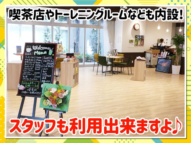 職場環境・雰囲気 | 職場環境 広々とした屋上テラスでランチや休憩が出来ます! また、併設してある喫茶店やトーレニングルームは スタッフも使用可能になっておりますので、 休憩やちょっとした運動にピッタリですよ♪ |