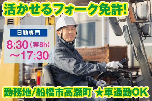職種/仕事内容 | 仕事内容 \昨年オープンの新センター/ 誰もが知ってる安心の大手飲料メーカー! 最新設備&キレイな商品センター内♪ 【勤務地】 千葉県船橋市高瀬町1丁目 南船橋駅・新習志野駅より車で7~8分 ★車・バイク通勤OK♪ ◆要フォークリフト資格ある方! ※ブランク等も大歓迎♪ (親切丁寧な研修充実で安心♪) 【具体的には】 フォークリフトによる商品の入出荷! ※主に飲料品や洋酒類等中心 ★手積み手降し作業殆どなし♪ (手順を覚えれば難しい作業もナシ) ★フォーク経験あればスグ慣れます! (シニア世代の方も活躍中) 【勤務時間・曜日】 8:30~17:30/休1h・実働8h ★月~金曜内で週3日~5日/応相談♪ 【休日・休暇】 完全週休2日制♪ 土・日・祝日・GW・年末年始 ★日勤専門/早朝や夜間勤務ナシ♪ ★昼休憩1hの他に午前午後お茶休憩あり (入出庫状況等による) ★残業ほとんどナシ/月平均10h程度! (シーズンによる※残業手当別途支給) ★土日祝休みでオフも超充実! (週3日~5日で応相談) ★車・バイク通勤OK (電車通勤不要) ★男女20代~60代活躍中! ※現在9名のフォークオペレーター活躍中 (女性現場責任者及び夜勤スタッフ含) |