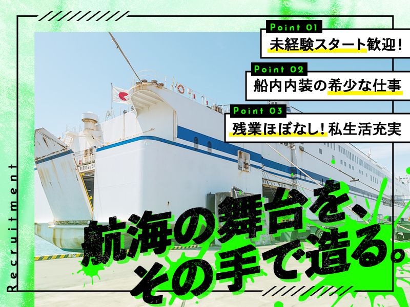 職種/仕事内容 | 仕事内容 / 30代活躍!未経験OK! 内装工事スタッフ募集! \ POINT  ̄ ̄ ̄ ̄ ̄ ̄ ̄ ̄ ̄ ̄ ̄ ̄ ̄ ̄ ̄ ■ 造船+家具製造+内装+加工 → 幅広い経験が積める! ■ 基本土日祝休み ■ 残業月10h以下 ■ 髪色やひげ自由 ■ 資格取得支援あり _______________ ー 仕事内容 ー 新造船や修理船の内装工事をお任せします! 1|船舶の内装全般 2|船に合わせた家具製作 3|資材の仕入れ・加工 4|テント・レザーなどの縫製 船出の舞台を整え、海へと送り出す――。 そんな誇りある仕事に、あなたの手で挑んでみませんか? \ 未経験スタート大歓迎 / はじめは、道具の使い方を覚えることから。 OJTでムリなく技術を身につける! |
