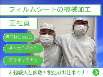 職種/仕事内容 | 【雇用形態】 正社員 【職種】 フィルムシートの製造スタッフ/未経験可 【仕事内容】 フィルムシートをはじめとする 様々なシートを、 機械を使用して スリット加工(カット)する作業です。 ー ◆作業の流れ◆ ①フィルムを機械にセット ②機械にてスリット加工 ③カットされたフィルムの検査や梱包 ー ◆工場内冷暖房完備◆ 年間を通して室温は18度~28度なので、 快適にお仕事して頂けます! ー ◆フィルムシートを使用した製品例◆ ・スマートフォンの保護シート ・使い捨てマスク ・ペットボトルのラベル 等 【仕事の特徴】 ★資格不問! 資格不要で働けるお仕事! 無資格でも働けるお仕事をお探しの方、 ぜひ一緒に働きませんか? 学歴も不問です。 ー ★経験不問 未経験でも働けるお仕事です。 「未経験入社」の方も 先輩スタッフが1から教えていきますので ご安心ください! ー ★仕事量・業績安定 2025年度から賞与は年3回支給します! 夏・冬のボーナスに加え、 GWにも支給します! ー ★約20名のスタッフが在籍 20~40代の男女スタッフが活躍しています! ー ★入社時期相談可! 10月入社や11月入社はもちろん、 在職中で少し先の入社希望の方、 入社日は相談に応じますので お気軽にご相談下さい♪ ー ★コロナ対策万全 ・マスクの着用 ・手指アルコール消毒の実施 ・検温の実施 ー 【こんな方におすすめ】 ・工場内作業のお仕事をお探しの方 ・製造職のお仕事を希望されている方 ・機械工に興味のある方 ・機械オペレーターとして働きたい方 ・工場勤務したい方 ・製造スタッフとして働きたい方 ・製造業に従事したい方 ・工場ワークのお仕事をお探しの方 正社員,土日祝休み,賞与あり,産休・育休取得実績あり,退職金制度あり,未経験者歓迎,業界未経験者歓迎,フリーター歓迎,第二新卒歓迎,主婦・主夫歓迎,ブランクOK,学歴不問,経験不問,長期,転勤なし,中途入社5割以上,自転車通勤OK,制服あり,交通費支給,研修あり,長期休暇あり,育休あり,年間休日120日以上,経験者歓迎,完全週休二日制,40代も応募可,職場見学可,面接1回,即日勤務OK |