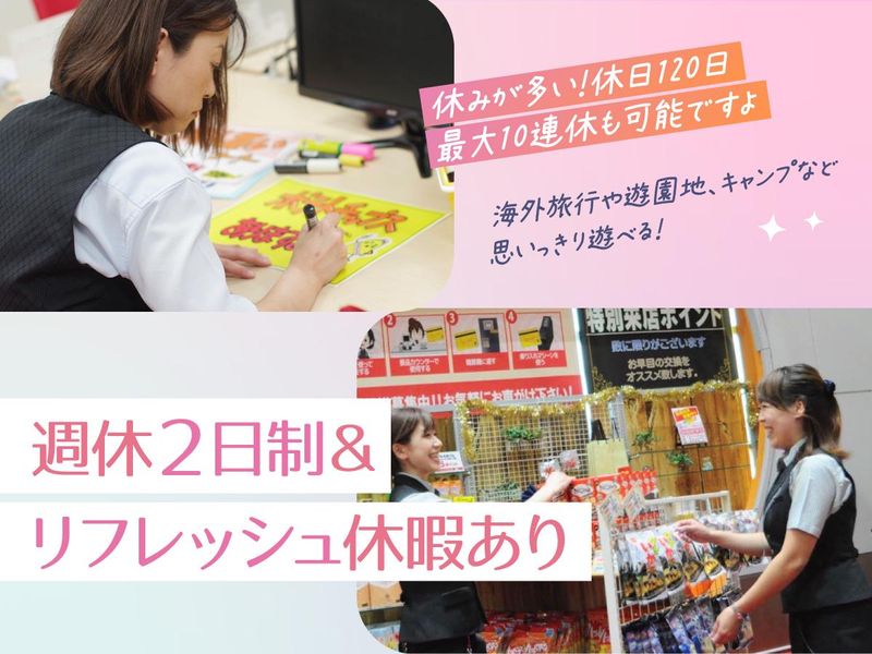休日休暇 | 休日休暇 シフト制で働きやすさバツグン◎ お休みがしっかりあるので ワークライフバランスを 重視したい方にもおすすめです! ★年間休日101日+ 会社指定日休み19日 (有給消化+特別休暇付与) =休日として120日!!! <リフレッシュ休暇あり> 「年2回/最大6連休」 または 「年1回/最大10連休」 希望する日に取得できるので 帰省や旅行など、家族時間や プライベートも大切にできます★ <その他> *有給休暇 *産前・産後休暇 あり \ 女性スタッフも多数在籍 / 実際に家事や育児と両立しながら 働いている主婦・ママも活躍中! 産休や時短制度もあるので ライフステージの変化にも対応可! |