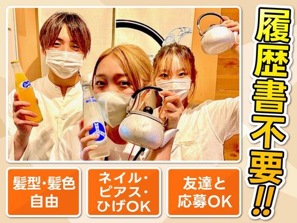職種/仕事内容 | 仕事内容 ホール業務:お客様のご案内・オーダー伺い・料理の提供・片付け・ドリンク作成・レジ業務など キッチン業務:仕込み・盛付など簡単な作業から始めていただきます。 社員さん・先輩スタッフと一緒に行っていただくので、業務未経験の方もご安心ください! ただ働くだけでなく、接客業務を楽しんでください♪ ❖**・・・**❖**・・・**❖**・・・**❖**・・・**❖ <こんな方も歓迎!> ・扶養内で働きたい方 ・バイトデビューや未経験者 ・人気店・おしゃれ居酒屋で働きたい方 ・ワイワイ楽しく働きたい方 ・学校と両立したい大学生 ❖**・・・**❖**・・・**❖**・・・**❖**・・・**❖ *お店について* 寿司と天ぷらが楽しめる居酒屋です! 当店は、食材と調理方法にこだわっており、寿司も天ぷらも真心こめてご提供させて頂きます。 寿司は市場直送の鮮魚を使用しており、しゃりは米マイスターが特別にブレンドしたお米に赤酢を使用したすし酢をあわせた やんわり江戸前風です。 当店名物の寿司ドックは 見た目よし、味よし、ボリュームよしの 子供から大人まで楽しめる自慢のお料理です。 |