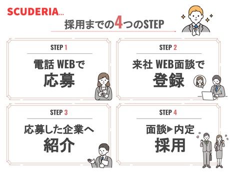 その他 | その他 友達と応募OK、60代も応募可、職場見学可 【ブランド名】 SCUDERIA(スクーデリア) 【事業内容】 人材派遣業(派07-300699)・その他人材サービス業 |
