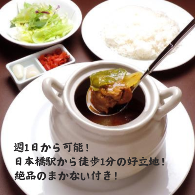 職種/仕事内容 | 仕事内容 【新着求人】アルバイト・パート ==================== ・メディアに多数取り上げられる人気店! (嬉しい絶品のまかない付き!) ・日本橋駅より徒歩1分で通いやすい! ・週1日&WワークOK!働きやすさ◎ ・履歴書不要&WEB面接可! ==================== 【店舗情報】 広告をご覧いただきありがとうございます。 私たちはレストラン、紅花別館(ベニハナベッカン)と申します。 1937年に創業し、日本橋で87年間にわたって営業しております。 当店の名物は鉄板焼きとココットカレーです。 ココットカレーとは当店オリジナルのカレーで、スリランカ直輸入スパイスを使った秘伝のカレーソースを、 ココットと呼んでいる大きなツボに入れてご提供しております。 【お仕事詳細】 ・お席へのご案内 ・オーダー取り ・お料理の配膳 ・テーブル、食器の片付け など、一般的なホール業務 ※鉄板焼きの接客は社員が担当いたします。 【1日の流れ】 ・09:50:出勤→制服に着替える ※着替えの時間も勤務時間としてお給料をお支払いしております。 ・10:00:朝のミーティング ※今日の予約の状況、営業の準備などについて共有します。 ・10:05:開店準備 清掃、食器の準備、サラダ薬味の盛り付け ・11:00:開店→接客業務開始 ①お客様をお席までご案内する ②ご注文をうかがう ③お料理を配膳する ④お客様のお見送り ⑤食器の片付け ※開店後は基本的に①~⑤を行っていただきます ・13:30:閉店作業 清掃、洗いもの、物品補充 ・14:00:制服を着替える ・14:15:退勤する(まかないあり) ※名物ココットカレーも召し上がっていただけます 【未経験の方も安心のOJT研修あり】 気さくで仲間想いの社員と 温かい人柄のスタッフさんが 丁寧に研修/トレーニングさせていただきます。 また、仕事のマニュアルを準備しています。 仕事の内容を忘れてしまっても、 みなさま自分自身で振り返っていただくことができます。 ※研修/トレーニング期間中も時給は変わりません。 【まかないの特徴】 当店では5人のシェフが日替わりでまかないを作ります。 名物のココットカレーも食べられます。辛いものが好きな人には特におススメです。 【店舗URL】 その他、詳しくは下記ご確認ください https://www.benihana.jp/ |