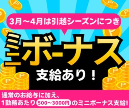 職種/仕事内容 | 仕事内容 ■■■■■■【お仕事のオススメポイント】■■■■■■ 「自由なシフトでもしっかり稼げる」高時給だから少ない日数で高収入可 「未経験OK」引っ越し業界が初めての方もOK! 「社員登用制度あり」ゆくゆくは正社員を目指せる! 「日払い・週払いOK」なので、急な出費にも◎ 「登録制の自由シフト」週0日があってもOK! 「履歴書不要&WEB面接OK」その場で即決! ■【スキマバイト・スポットワークな働き方が魅力◎】■ シフトは前日12時までにスマホアプリで簡単申請♪ 「学費を自分で稼ぎたい」 「バンド活動の無い日に仕事をしたい」 「資格試験の前は仕事の量を減らしたい」 「急に予定がなくなったから稼ぎたい」 「劇団活動にかかる費用を稼ぎたい…」など その時の状況に合わせて 高時給で好きなときに働けるから 短時間でも高収入を目指せます! ■■■【お願いするのは、「引越のお手伝い」】■■■■ 家具・家財の運搬~配送・発送作業。 2~5人のチーム制なので、 サポート&フォロー体制ばっちり!! 移動時は助手席で運転のサポート! ※運転はないので免許は不要です♪ ■■■■■【1日の仕事の流れをご紹介♪】■■■■■■ (例) ※1件目のお客様 9:00 現地到着 10:00 荷積み完了、移動 10:30 引越先で荷下ろし 11:30 引越完了 12:00 昼休憩 ※2件目のお客様 14:00 引越作業開始 15:00 荷積み完了、移動 16:00 引越先で荷下ろし 18:00 引越完了 ■■■【バイトデビュー応援◎ゆくゆくは正社員にも】■■■■ 入社初日は研修施設でお仕事の流れなどをレクチャー。 中にはアルバイトから正社員になる先輩もいるから、 将来を見据えてお仕事をしたい方にもおすすめです♪ ■シフト自由だからプライベートも充実◎■ Wワークや資格に向けた勉強中の方、 夢に向かって努力してるあなたにもおすすめです♪ |