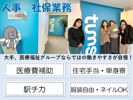 職種/仕事内容 | 仕事内容 医療法人グループで社保関連業務担当を募集します。 ・不況に強い!安定の医療福祉グループでのお仕事です ・篠崎駅西口直結で雨の日も濡れることなく通勤楽々! ・職員約7,000名に加え病院、クリニック、介護施設、保育園と施設形態も様々ですので幅広い経験を積むチャンスがあります! 【業務内容】経験を活かしてご活躍ください! ・健康保険…取得・喪失届・被扶養者異動届、算定基礎届、産休・育休関連届出、申請産休手当申請、傷病手当金申請 ・雇用保険…取得・喪失届、離職票、育休給付金申請 ・労災保険 ・年末調整 ・給与計算 ■必須要件 ・社労士試験合格者 ※勤務登録は行いません。 ・Excel関数のスキル(Vlookupなど) ・電子申請での届出経験 ・社保関連手続きの実務経験 ・給与計算、勤怠管理、社会保険手続き関連における一連の業務経験 ※業務内容補足:1号~2号業務は行いません。 【タムスグループ給与課について】 タムスグループは病院や介護施設、保育園など医療・介護・保育の分野で約80の事業所を展開。 そのなかでも給与課は各事業所を労務の面からバックアップする縁の下の力持ち的存在、 業務は社保手続き、給与計算など多岐に渡ります。 他部門と連携して業務を行うことが多いため、コミュニケーションやチームワークを大切にしています。 【働くママが大活躍しています】 女性が多く活躍している給与課では、子育て中の方も多く在籍しています。 ご家庭の都合にあわせて有休をとったり、お子様の急な病気での早退やお休みしても 給与課メンバーで助け合い、柔軟に対応しています。 頼りになる先輩ママ社員もたくさん在籍しているので、仕事だけでなくプライベートの事も相談できますよ♪ 2回育休取得し、働くママも活躍中 長期的に活躍できる環境です! 【こんな人が活躍しています!】 前職では、社労士事務所で給与計算の人数経験は少なかったけど タムスグループで様々な申請の種類を経験し、今では一人で600名もの給与計算担当になって大活躍しています。 【給与課年齢構成】 40代女性が大活躍しています! 男性 3名 女性11名 30代 5名 40代 7名 50代 1名 60台 1名 【様々な経歴の職員が活躍中!】 ■50代/女性/責任者 7年程前に当社の経理部へ入職。3年在籍後に前職で給与計算の経験があったことから「明るい給与課にして欲しい」と管理本部長より直接お声掛けしていただき給与課へ異動しました(笑) 給与課は黙々と作業をしているので暗いイメージがあったのかもしれません。 私がメンバーにいつも伝えていることは、コミュニケーションとチームワークを大切にすることです。 困っていそうだなという人には積極的に声をかけるようにし、何でも聞きやすい環境作りは徹底しているので入職後、困っていることがあったら何でも聞いてください! タムスグループの給与計算は、病院・介護・保育・セントラルキッチンなど、さまざまな職種の給与計算・社保業務に携わることができます。 7,000人の職員が在籍しているタムスグループだからこそ、経験できる量と種類の幅は他社とは比べ物にならないと思っています。 私も責任者として毎日忙しくしていますが、有休もしっかり取得しています!平日休みは趣味のゴルフ、連休取って温泉に行ってリフレッシュしています。 ■30代/女性/主任 新卒で入社して以来、10年以上勤務しています。今は2児の母をしながら、片道1時間半の遠方から通っています。 なぜ10年以上続けられているのか?なぜ子育てしながら、遠方から通勤出来ているのか?以下、具体例を列挙します。 ・子供が体調不良になっても、皆さん「大丈夫だよ!」とフォローしてくれる ・産・育休が取得しやすい(実際2回も取得させていただきました) ・ミスが発生したとしても、前向きに解決策を模索できる空気感(ミスを叱責されるのでは?そんな心配はご無用です) ・風通しのよい社風(中途入職者が多いので短期間で馴染めます) ご応募お待ちしております! ■40代/女性/副主任 転職の決め手は、面接の雰囲気がとても良かったこと。 育児や介護と両立して働く方が多いと聞いたのも大きかったです。 給与計算や社保の仕事って細かい確認が多いんですが、分からないことや迷うことがあっても、先輩や給与課内の社労士の方に気軽に相談できてとてもありがたいです。 それに、業務ミスを防ぐための仕組みがしっかり整っているのも安心ポイントです。 チェックリストやダブルチェックの流れが整理されているので、落ち着いて進められます。 ■30代/女性/副主任 タムスグループの給与課では、わからないことがあったら、先輩たちが全力で助けてくれ、自分では対応できない難しい案件でも、必ず誰かが一緒に考えてくれるので、ひとりで抱え込むことがないのが本当に助かります。 風通しもとてもよく、「こうした方が効率よさそうかな…」って思ったことは気軽に意見でき、すぐに上司が「じゃあ会議の時にみんなで決めよう!」と動いてく