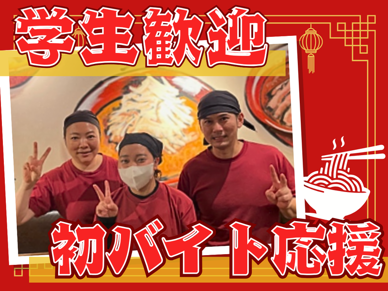 対象となる方 | 求めている人材 未経験・ブランクも大歓迎! 飲食店でのホール経験がある方優遇 【このような方も歓迎します!】 ・アルバイトデビューをしたい ・授業と両立して働きたい ・かけもちバイトと両立して働きたい ・「平日のみ」働きたい ・扶養内で働きたい ・ラーメンが好き など きっかけは何でもOK! 年齢の条件と理由:あり(18歳以上) |