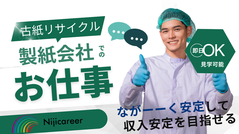 職種/仕事内容 | 仕事内容 ■■■■■■■■■■■■■■■■■■■ 高時給1600円★ 最高時給はなんと2000円! フォークリフト免許があれば尚可ですが なくてもOK! 重量物はほとんどなく、ムリなく 活躍できる職場です◎ ■■■■■■■■■■■■■■■■■■■ 古紙リサイクル製造会社でのお仕事。 古紙を再生紙へリサイクルする工程を おまかせします! <お仕事は3ステップ♪> ①古紙から不純物を取り除く ②乾燥させて、再生紙へリメイク! ③製品用に裁断する …こんな一連の作業をお願いします◎ ――――――――――――――――――― ★フォークリフトは実務経験なしでもOK ★重量物はほとんどなし ★長期で活躍できる職場です ★職場平均年齢は30~40代です! ――――――――――――――――――― 高時給1600円・夜間帯はなんと2000円! シフト制でしっかり稼ぎたいあなたに◎ 全くの未経験&無資格でもOKですよ‼ ぜひお気軽にお問い合わせくださいね。 ――――――――――――――――――― |