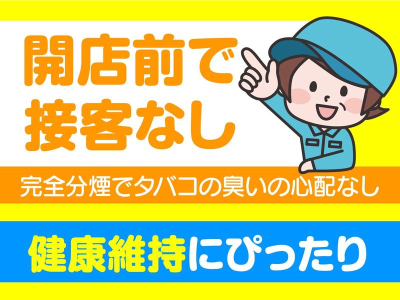 職種/仕事内容 | 仕事内容 ┌─────────────────┐ <1日2hだけ♪副業や扶養内OK> 開店前だから接客なし(^^)/ 本業前のWワークもOK★ 完全分煙でタバコの臭いの心配なし 50~60代の女性の方活躍中!! └─────────────────┘ ≪具体的な業務内容≫ ✅パチンコ台拭き ✅パチンコ玉拾い ✅床清掃 ✅トイレ清掃 ✅ゴミ回収 など チームで分担して作業を進めるので 負担が少なく、残業ナシで 無理なく働ける環境です。 …………………………………… ✨家事の延長で働けます!✨ …………………………………… 清掃に使う道具で特殊なものはなく、 作業自体もとても簡単なので 普段のお掃除が得意な方であれば 清掃業未経験の方も大歓迎◎ 接客なしで黙々と働けますよ! …………………………………… ✨20代~60代まで活躍中✨ …………………………………… 子育てが落ち着いて復職した主婦さんや 定年後のお小遣い稼ぎで働くシニアまで 幅広い年代の方が活躍中♪ 別のお仕事との掛け持ちもOK! ご家庭の都合や本業、私生活に合わせて 無理なく続けられるお仕事です◎ …………………………………… ✨週4日、1日2時間で募集✨ …………………………………… 基本的に残業はありません♪ Wワークや扶養内勤務歓迎♪ |