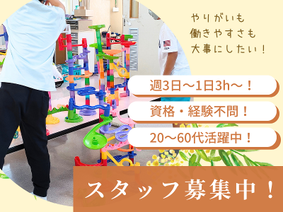 対象となる方 | 求めている人材 【必須条件】 ・高卒以上 <歓迎条件> ・年齢不問 ・主婦(夫)歓迎 ・教育/保育系の学部に通う学生の方も歓迎! ・ブランクのある方も歓迎 ・U・Iターン歓迎 ・子どもが好きな方 ・扶養内勤務 ・児童指導員 ・Wワーク/副業可 ・介護福祉の勤務経験 ・教育保育等の経験者・有資格者歓迎 |