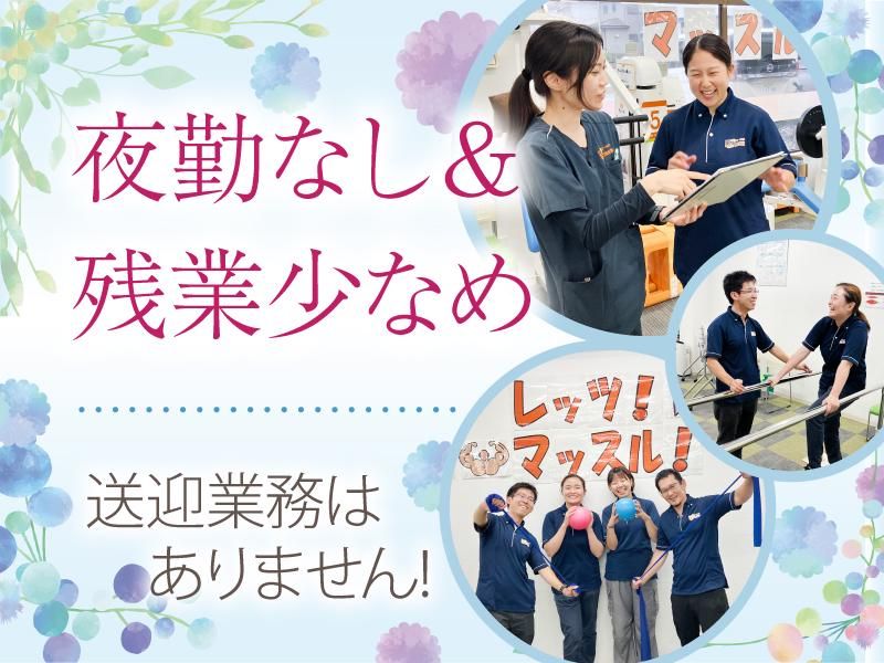 対象となる方 | 求めている人材 ✅要理学療法士または作業療法士資格 ✅介護系の資格・経験不要! <こんな方歓迎> ◎新しいことにチャレンジしたい ◎利用者様や仲間に笑顔で対応できる ◎チームワークで仕事がしたい ◎地域貢献・社会貢献に興味がある ◎体を動かすことが好き <1人ひとりのスタイルで働けます!> バリバリ働いてキャリアアップを 目指したい方はもちろんですが、 コツコツと目の前の仕事をしっかり こなしていきたいという方にもピッタリ◎ 1人ひとりのペースに合わせて働けます。 「子育てがひと段落して仕事復帰したい!」 「退院後の利用者さんをサポートしたい」 「自分の技術向上を目指したい」 そんな方も大歓迎です! お仕事のブランクがある方も まずはできることからお任せしていくので 安心してくださいね♪ <プライベートも充実◎> 夜勤がなく、日勤のみ! 17時終業で無駄な残業もなく、 自分の仕事が終われば即帰宅◎ 仕事後の時間もしっかりとれます。 しかも週休3日制なので プライベートとの両立もバッチリ◎ 夏季休暇や年末年始休暇など 長期休暇も取得可能! 仕事とプライベートのメリハリをつけて 働ける職場です。 |