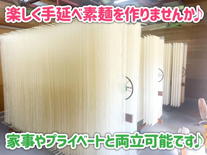 職場環境・雰囲気 | 職場環境 楽しく働ける手延べそうめんの製麺所です♪ みんないい人ばかりですので働きごこちの良さが自慢です♪ |